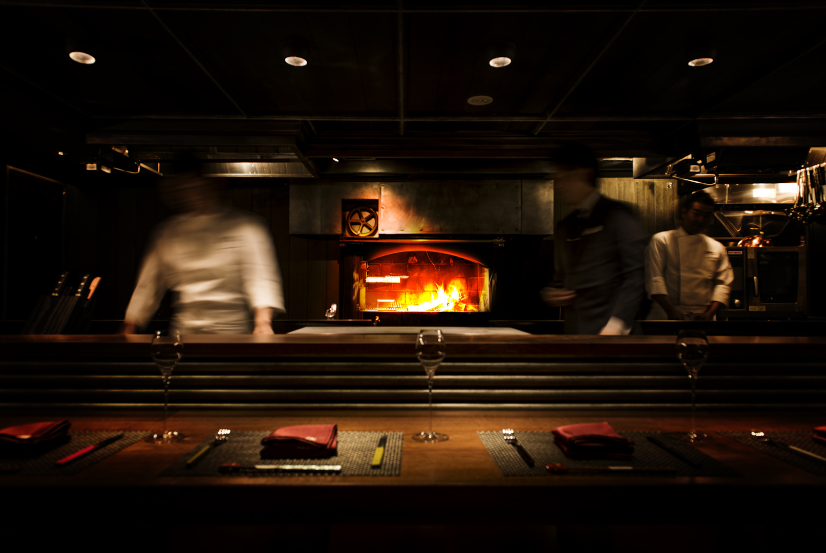 店内は、劇場型オープンキッチン中央にフランス・ラルナージュの白土レンガを使用したこだわりの薪窯が設置され、薪の炎と薫りに癒されながらお食事をお楽しみいただけます。料理長・寺田 惠一が国内外から厳選する食材を、原始的でありながら多様な可能性を秘めた薪の炎を使用することで、旨味と豊かな薫香を凝縮し、食材本来の魅力を最大限に引き出しご提供。また、「銀座おのでら」統括総支配人統括ソムリエ・大橋 哲藏とソムリエチームが厳選したワインとのペアリングもご用意。薪焼き料理とのマリアージュは、世界中からご来店いただくお客様からも高い評価をいただいております。