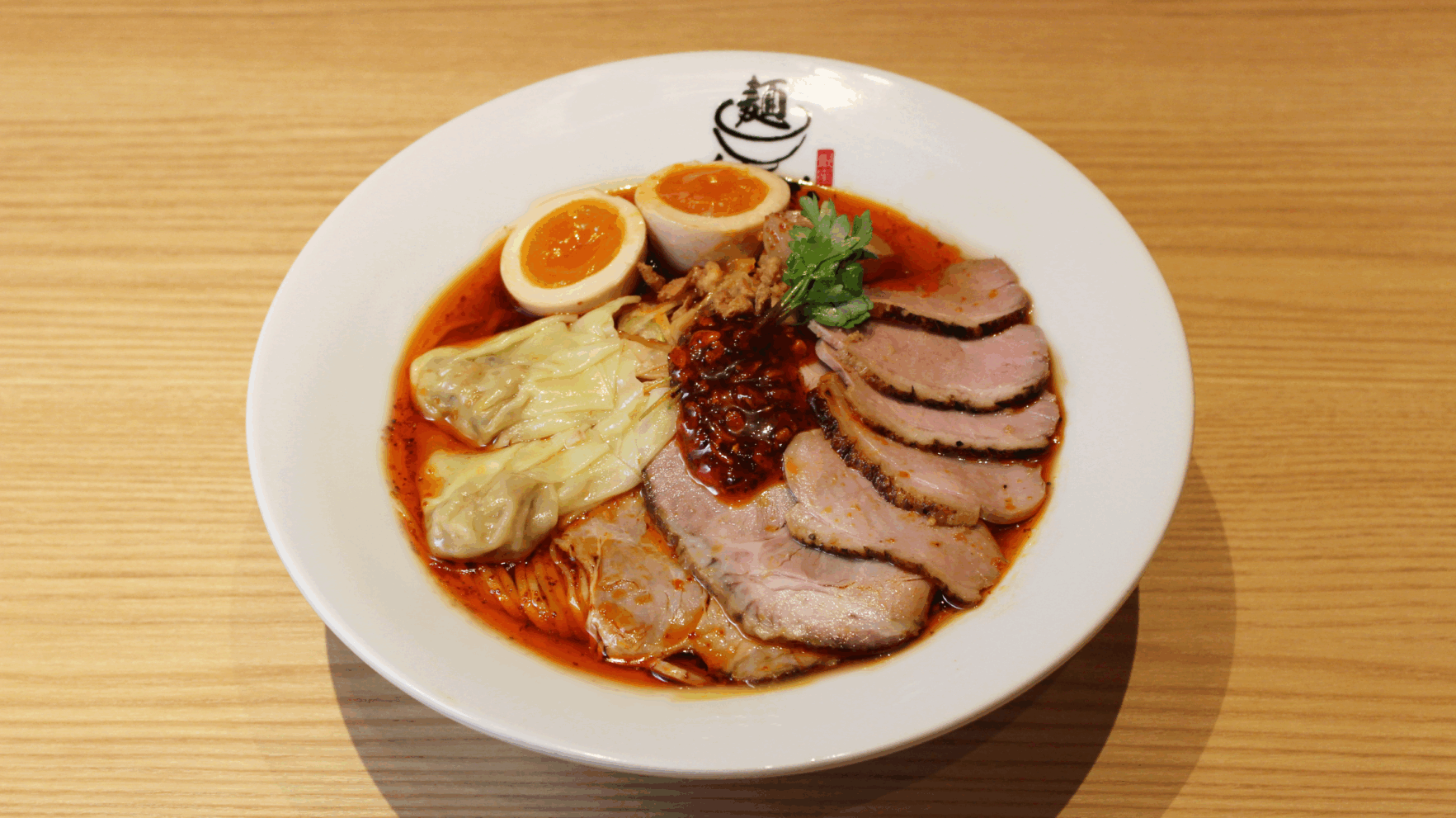 至高旨辛ラーメン 2,400円/税込 (燻チャーシュー2枚、鴨チャーシュー5枚、葱、メンマ、セロリ、煮卵、トリュフワンタン)