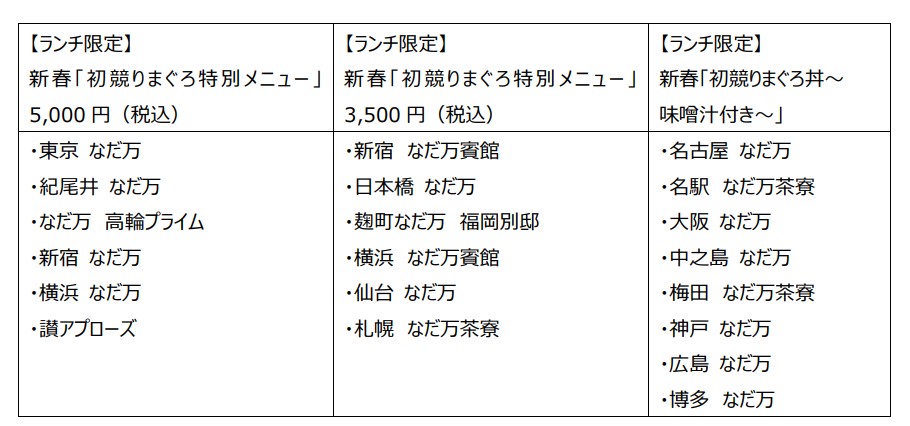 【「なだ万」新春 初競り鮪フェア実施概要】