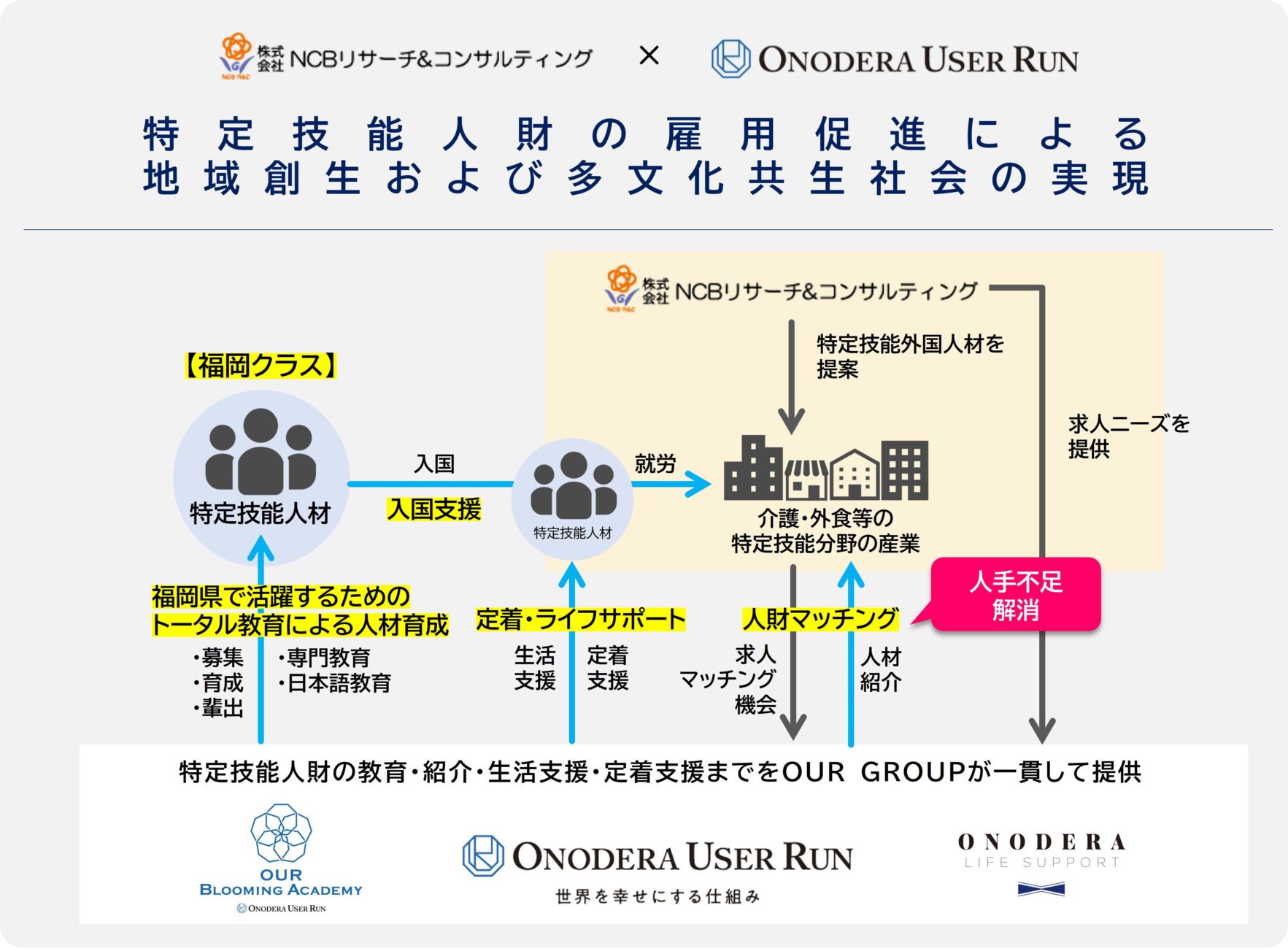 2025年12月26日、株式会社ONODERA USER RUN(本社:東京都千代田区、代表取締役社長:加藤 順、以下「OUR」)は、深刻化する地方の人手不足などの社会課題解決に向け、福岡県内における特定技能外国人材の雇用促進の強化に関する連携協定を西日本フィナンシャルホールディングス傘下の株式会社NCBリサーチ&コンサルティング(代表取締役社長 井野誠司、福岡県福岡市、以下「NCBR&C」)と締結いたしました。