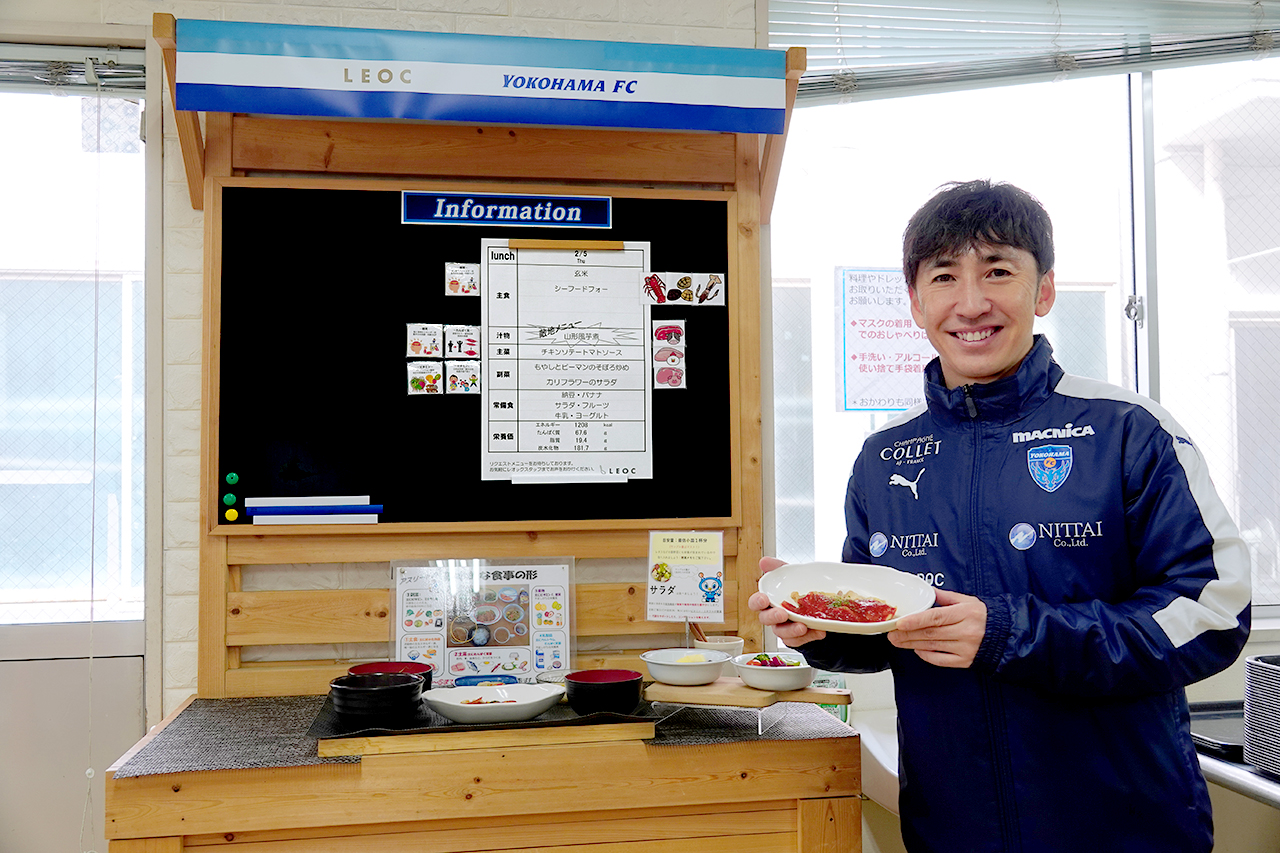 横浜FCのメインスポンサーとなってから、LEOCは横浜FCへの食事を提供しています。現在は練習場に併設された食堂で、栄養バランスとおいしさを両立させた食事を1日3回。さらに専属栄養士がつき、選手ごとに栄養のアドバイスや、遠征時の食事のコーディネートも実施。横浜FCでの経験は、LEOCとしてもかけがえのない財産になっています。